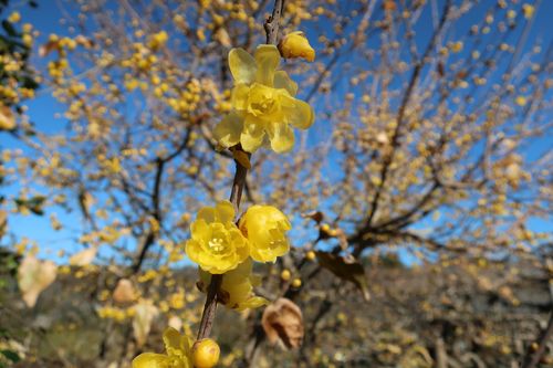 今園内ではロウバイも見頃となっています。香りがとても強く、数輪咲き始めた時点で咲いたのがわかるほどです。