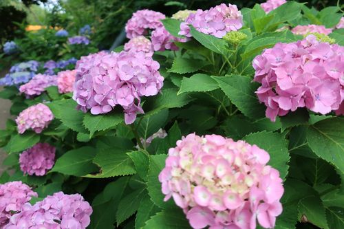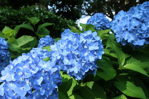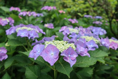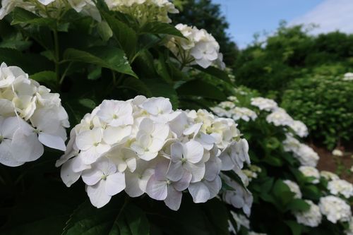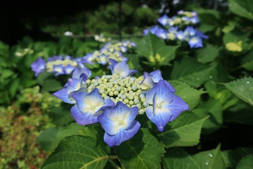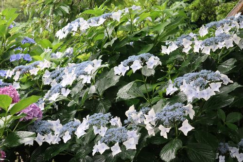 もう1つの主役であるアジサイも花盛りです。水色の花で見ても、鮮やかなものからやさしい色合いのものまで本当に様々…花の形も色々あるので、好みのお花を見付けられてみてはいかがでしょうか。