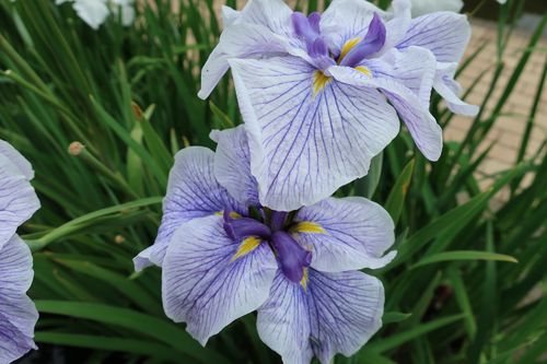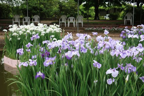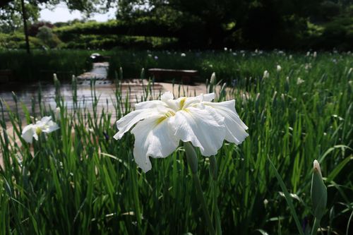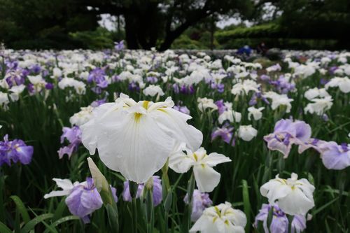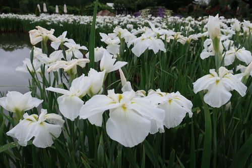 ブルー&ホワイトガーデンの主役、花菖蒲です。濃い青から淡い青、そして白までのグラデーションが涼やかな気持ちにさせてくれます。