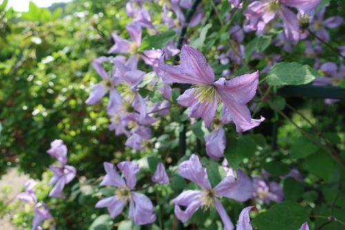 そしてブルー&ホワイトガーデンの準主役、遅咲きのクレマチスも可憐な小花を風になびかせています。無数のお花がトレリスを覆うように咲く姿は圧巻です!