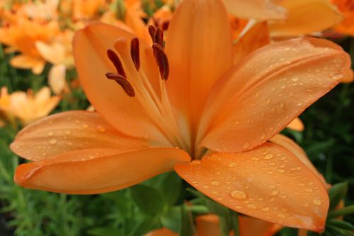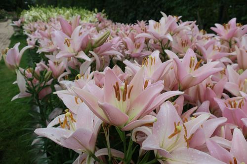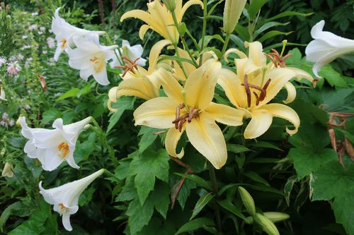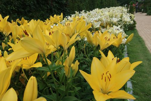 ローズガーデンでは地植えのユリも存在感を増してきました。ユリの中でも早咲きの品種は5月中旬頃から咲き始め、今は遅咲きの品種が見頃を迎えてきています。