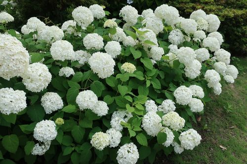 こちらはアジサイ・アナベル。バレーボールのように大きな花が特徴です。