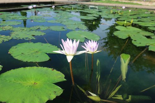 園内の熱帯スイレンなど、水辺の植物を見ると涼しい気持ちになりますね。
