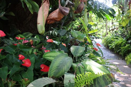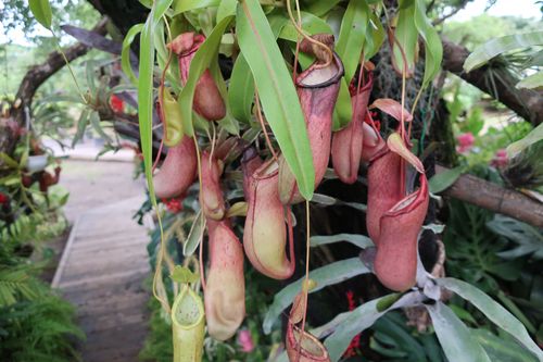 たくさんの熱帯植物が並んでいて、中でも僕のおすすめはウツボカズラという食虫植物です。