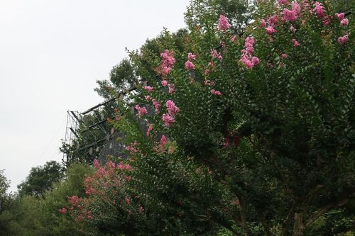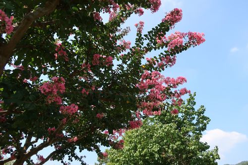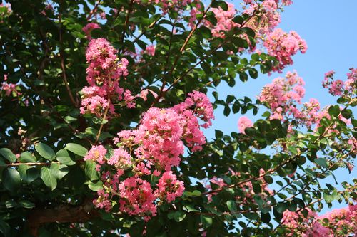 サルスベリは満開を迎え、深い緑と鮮やかなピンクのコントラストがとても美しいです。