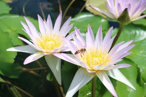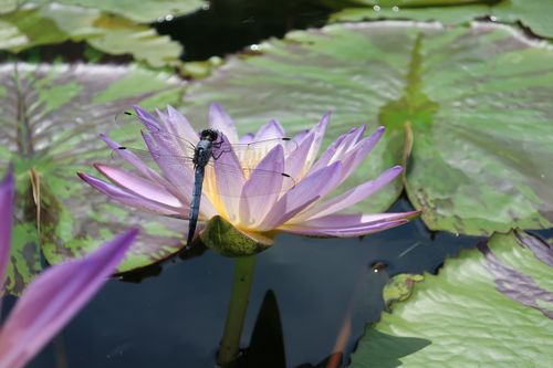 スイレンの写真を撮っているとトンボとミツバチが出現!