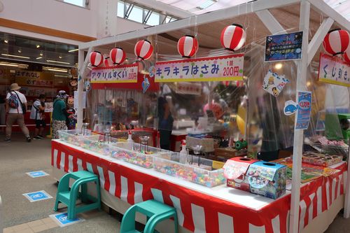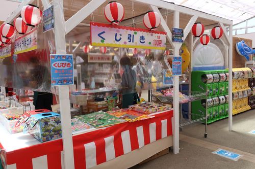 くじ引きやユーターンボウリング、射的などお子様が楽しめる縁日が沢山あります。わたあめやチョコバナナ、ラムネといった夏を感じられる食べ物も味わえます。コラボ商品やガチャガチャなどもありますのでぜひ足を運んでみて下さい。