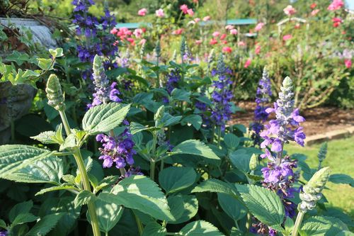 ブルーサルビアはボリュームたっぷりで、爽やかな色合いながらも夏の花壇を賑やかにしてくれます。