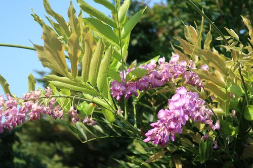 こんなに暑い中花を咲かせる元気があるなんてすごいですね!春に咲く藤の花とはまた違った美しさを味わうことができます。