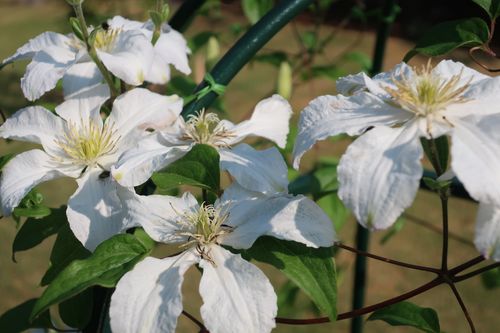 クレマチスは白や青系統の落ち着いた色が多く、花の形もなんとなく涼しげですね。