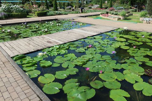 フラワーステージのスイレンは水面いっぱいに葉を広げ、色とりどりの花もより一層華やかさを増しているようです。
