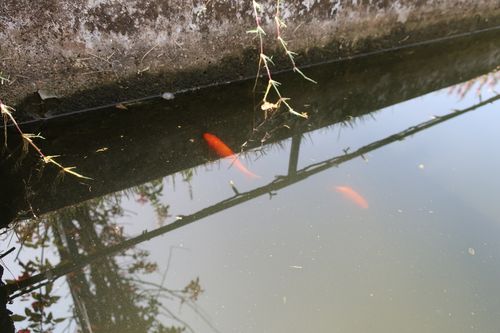 そういえば、本日、入口に入ってすぐのフラワーステージで写真を撮っていたら、足元で金魚が泳いでいました。