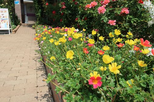 園内の花壇では、ポーチュラカやマリーゴールドなど見ているだけで明るい気持ちになれる色鮮やかな花がたくさん咲いていました。