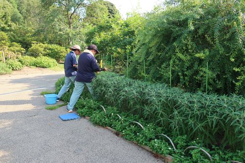 そして、秋に向けて、アメジストセージを綺麗に咲かせるための誘引作業を行っています。