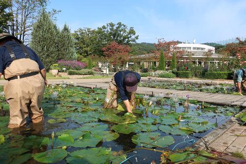 こうして朝の冷たい水に腕深くいれて手入れをしてくれる方々がいるんです!
