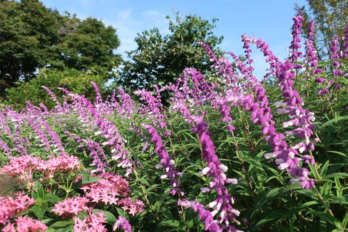 見頃を迎えているアメジストセージが園内の至る所で咲いています。