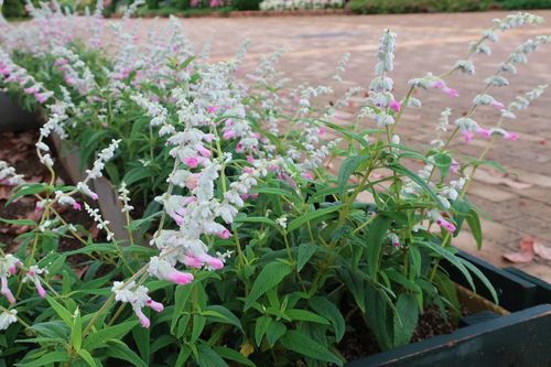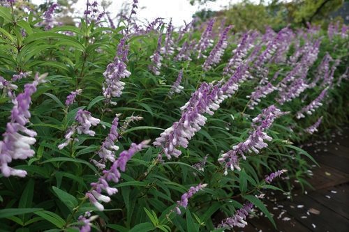 今、園内ではアメジストセージとともにローズリーフセージが見頃を迎えています。
