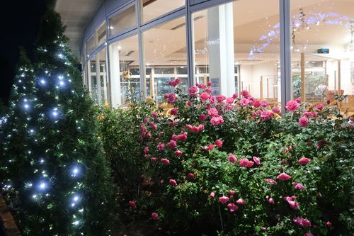 レストラン周辺のバラもライトアップされて、室内から見やすくなっています。