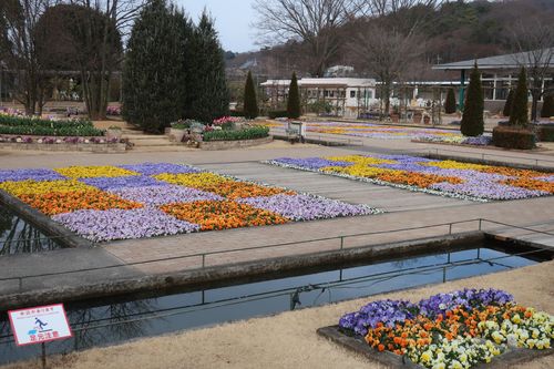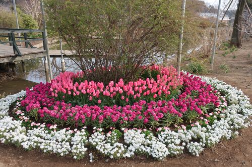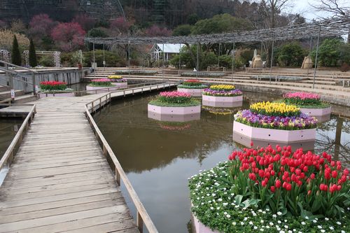 フラワーステージの西側にも春の水上花壇が設置されました。
