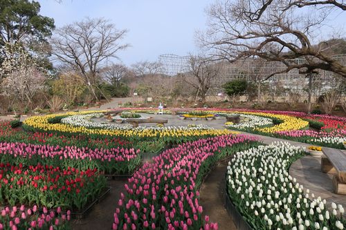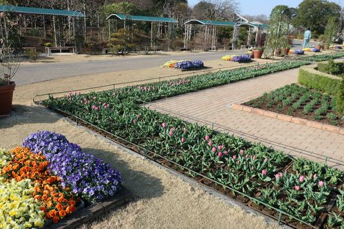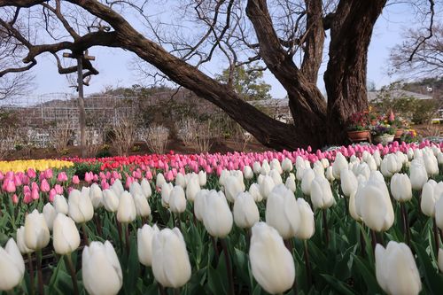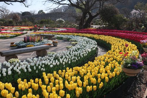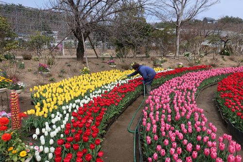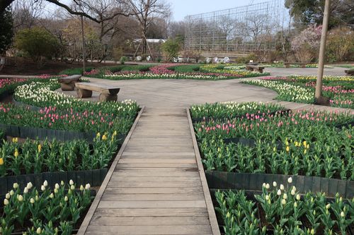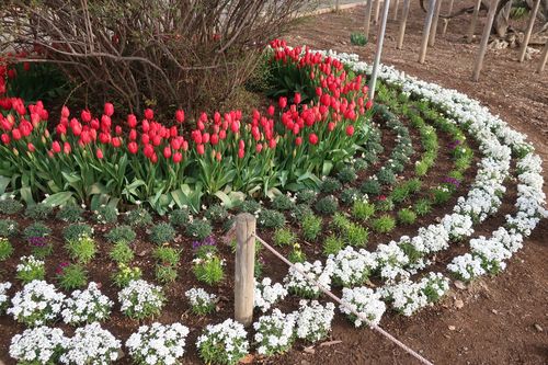 先月までイルミネーションが設置されていた場所は今、たくさんのチューリップで埋め尽くされています。