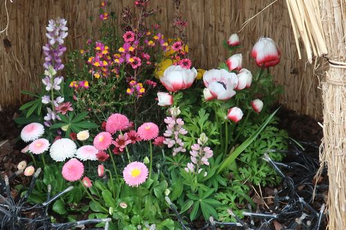 中央にもチューリップやストックが植えられて春らしさがパワーアップしました!