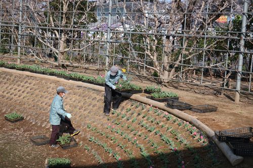 そして今日は早朝からチューリップの搬入作業が行われました!