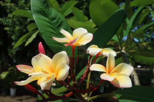 「プルメリア」です!可憐な花と甘い香りが魅力ですね。色によって香りが異なります。