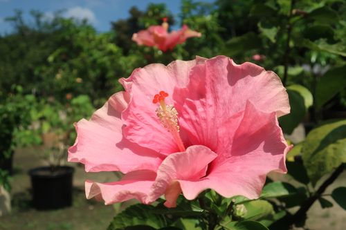 沖縄といえばこちら!「ハイビスカス」!背景が海なら完全に沖縄ですね。