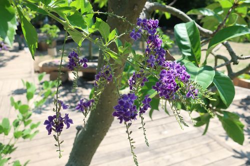 「デュランタ」と言います。花の咲き具合が藤に似ていますね。