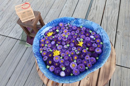 お次は、今話題の花手水。