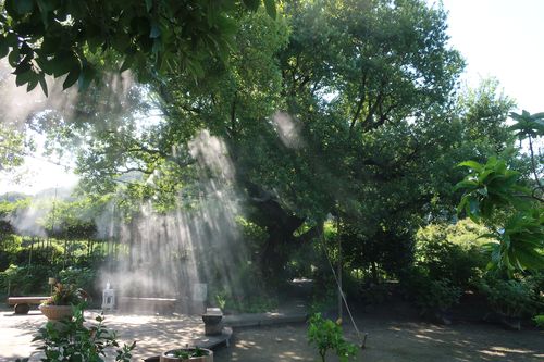 ジャングルを奥に進むと、樹々の隙間から光が差し込んでいて