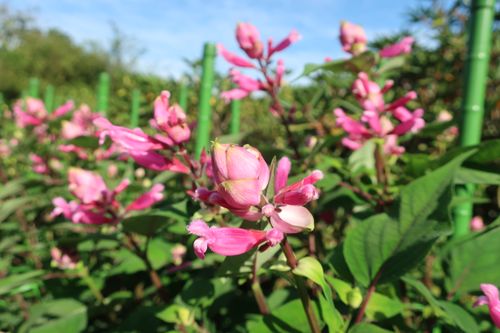 長く伸びたガクに紫や白、桃などの花をつけてくれます。