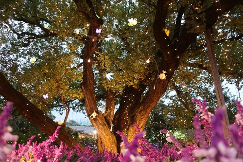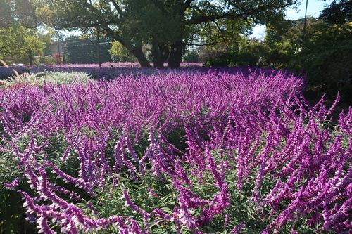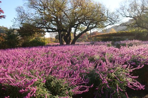 「生命の樹」を取り囲むようにアメジストセージが咲いていて