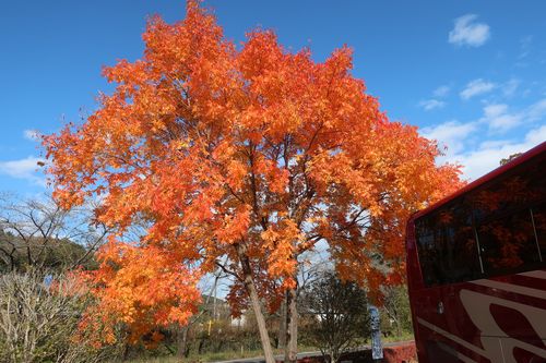 紅葉が美しい「櫂の木」。正面駐車場にて。