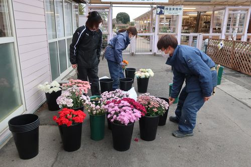 ここではカーネーション、ガーベラ、バラ、ストック、キク、ブルースターが