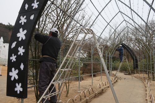 さて、園内がロウバイの甘い香りに包まれだすと、パーク管理部では脚立の奪い合いが始まります。