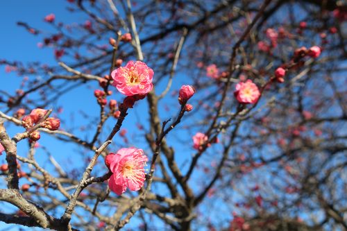 寒紅梅(カンコウバイ)です。梅の中でも開花が早く、1月頃から咲き始めます。