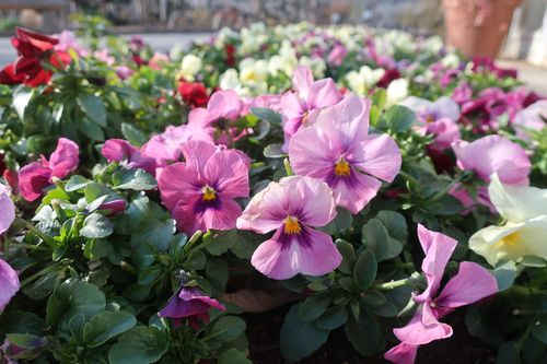 ビオラも寒さに負けず冬の花壇を彩ります。