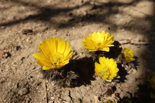 お次は白藤トンネルの福寿草です。