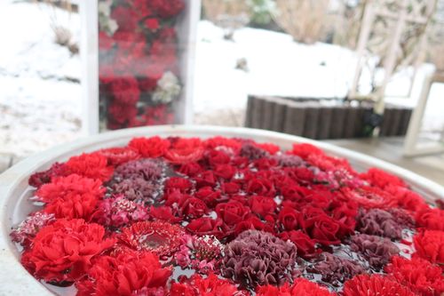 花手水も、雪をバックにするといつもと違う雰囲気に…!