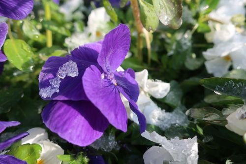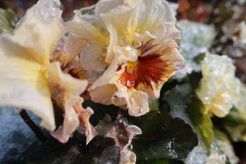 シャーベット状の雪が花に乗っていて、いつもとは違った