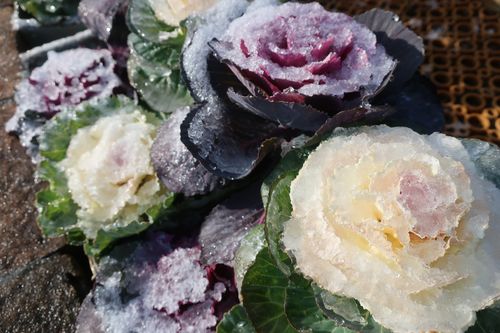 ハボタンやストックも、雪にも負けず元気に咲いてくれてます✿