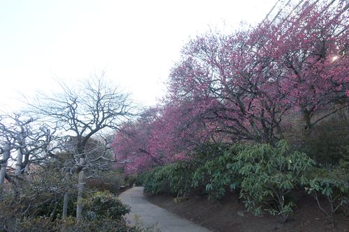 寒紅梅やロウバイなどが山側を彩っています。