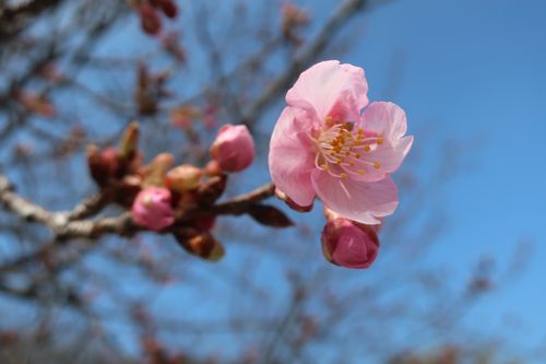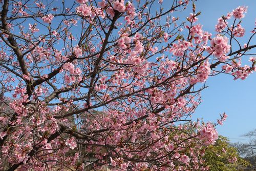 さて今日は意表をついて正面駐車場の河津桜から・・