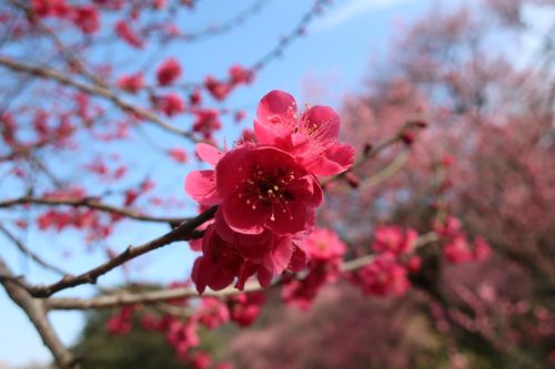 「紅千鳥」園内にある梅の中で一番濃いピンク色を楽しめます。