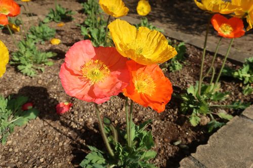 1ポットから3色の花が咲いてるアイスランドポピーを発見!!