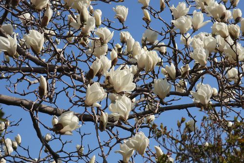 近付いて見ると白いチューリップがたくさん!チューリップの木?いえいえ、ハクモクレンでした。