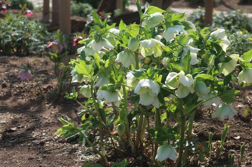 こちらはさかさまチューリップ?いえいえ、クリスマスローズです。園内の山側に特に大株が多いです。