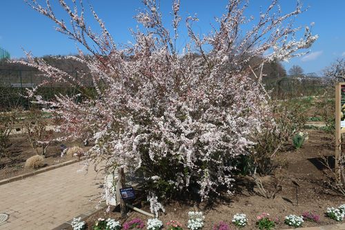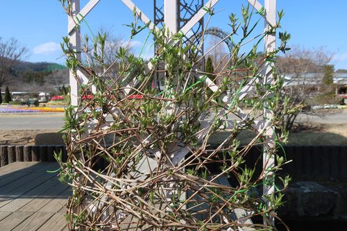 ユキヤナギ下花壇は来週の中頃、見頃になりそうな…。今週はまだちょっと早いです!