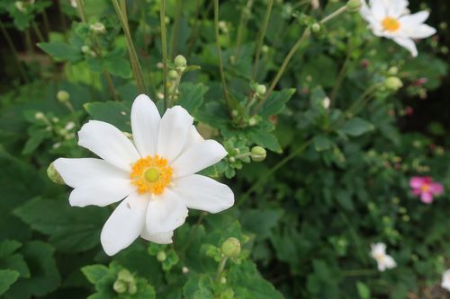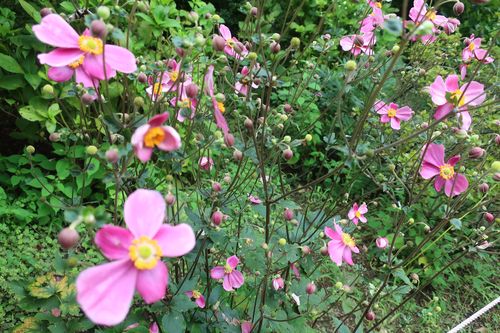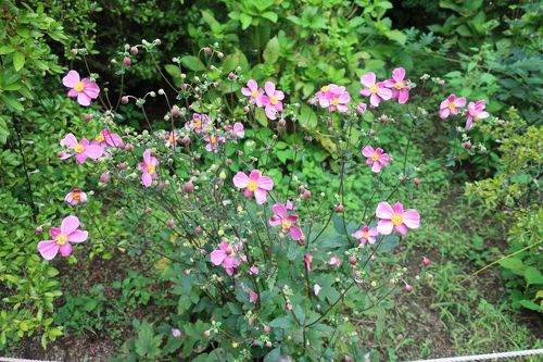 シュウメイギクはローズガーデンの花壇にも咲いています。